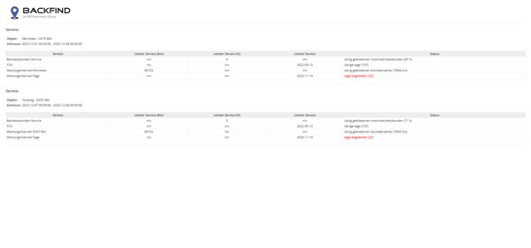 Kilometerstand und Zeitintervall für z.B. TÜV und Inspektion eingestellt und überwacht.
